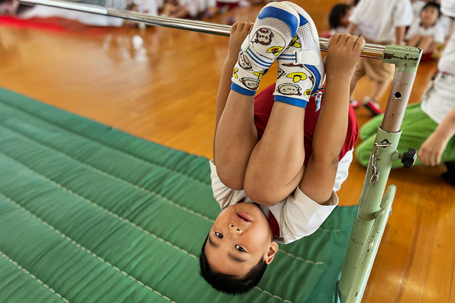 遊びによって毎朝の体操とサーキット遊び、週1回の専門講師による体操教室(4歳児から)で、小学校体育へのスムーズな接続ができています。